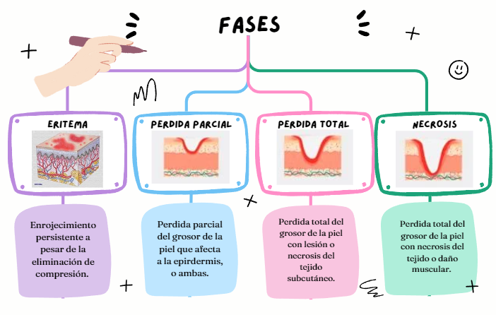 Las úlceras por presión se clasifican en cuatro fases según su gravedad:
