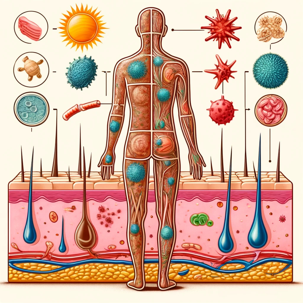 1- Protección: El cuerpo utiliza la piel para protegerse de microorganismos, productos químicos y lesiones físicas. Además, evita que los órganos internos se vean afectados por los rayos UV, polvo y otros contaminantes.