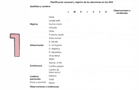 - Concreción de la actividad realizada: cambio de pañal, cambio del colector, acompañamiento al lavabo, puesta del orinal de cama...