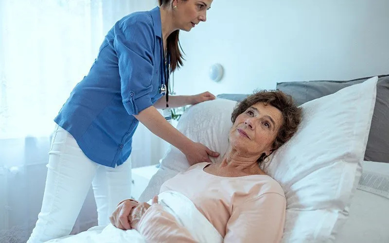 - Colocar al usuario boca arriba, con la cabeza ligeramente inclinada hacia el borde de la cama.